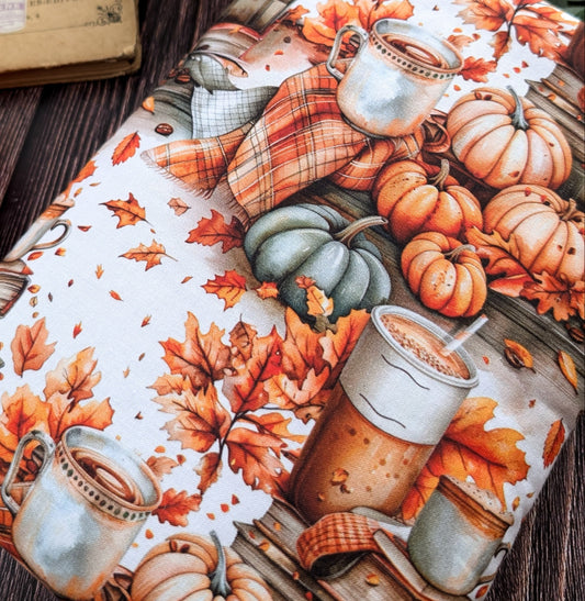 Pochette à livre et liseuse imprimé citrouilles fond crème