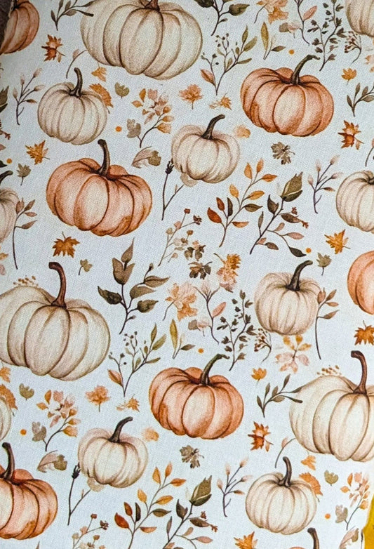 Pochette à livre et liseuse imprimé citrouilles fond crème