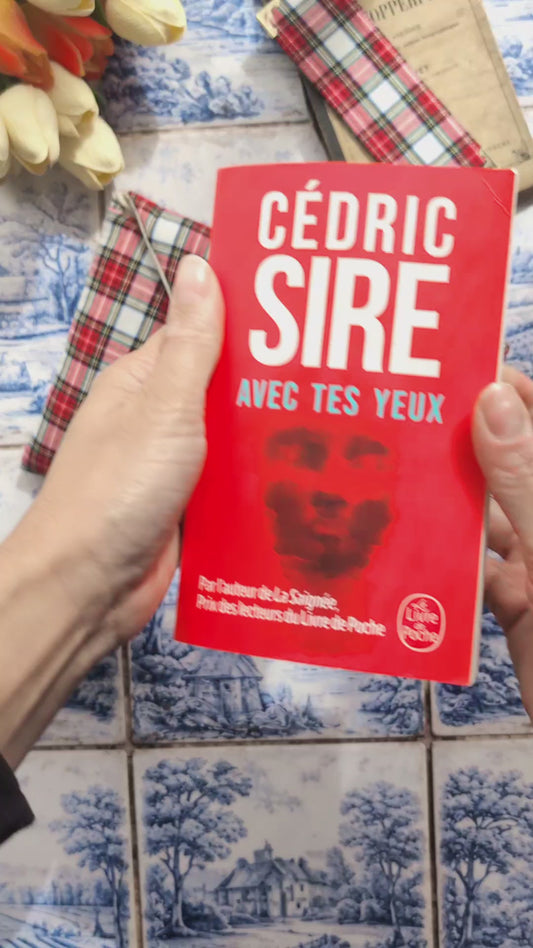 Pochette pour livre en tissu tartan rouge avec fermoir abeille en laiton